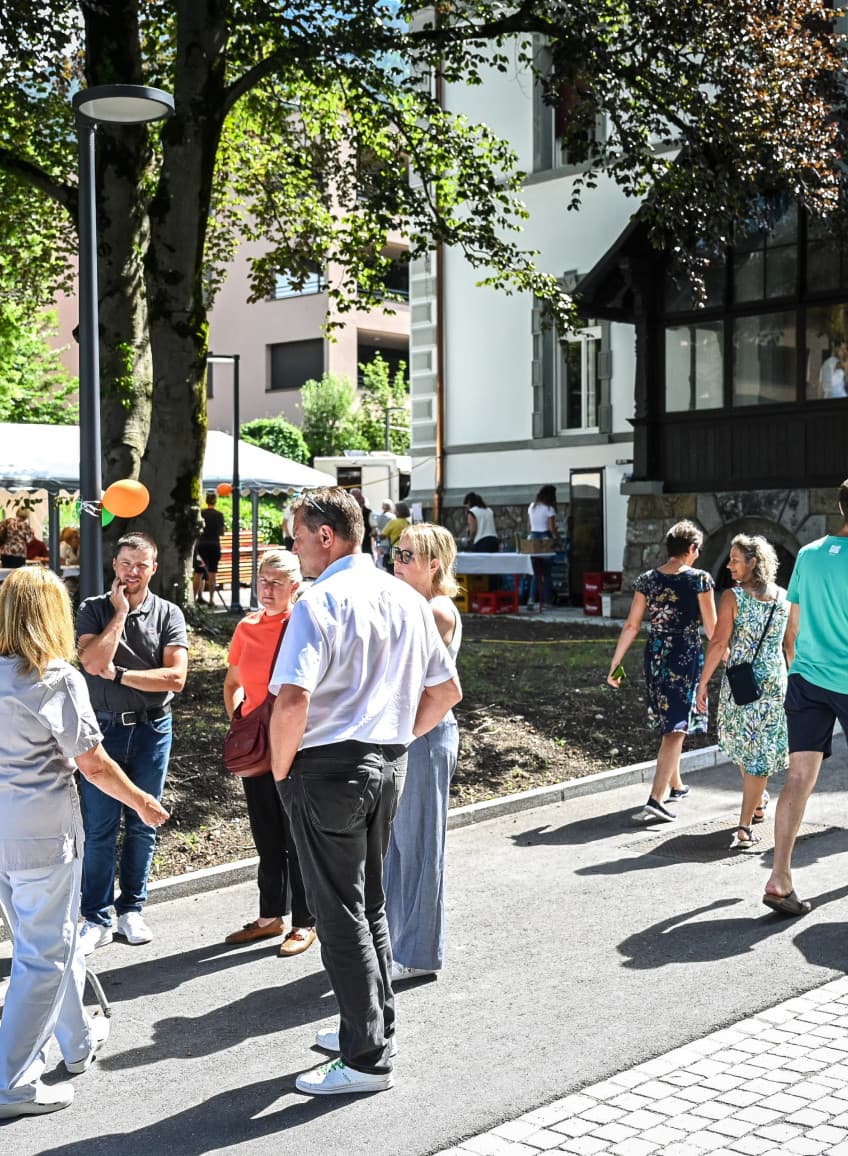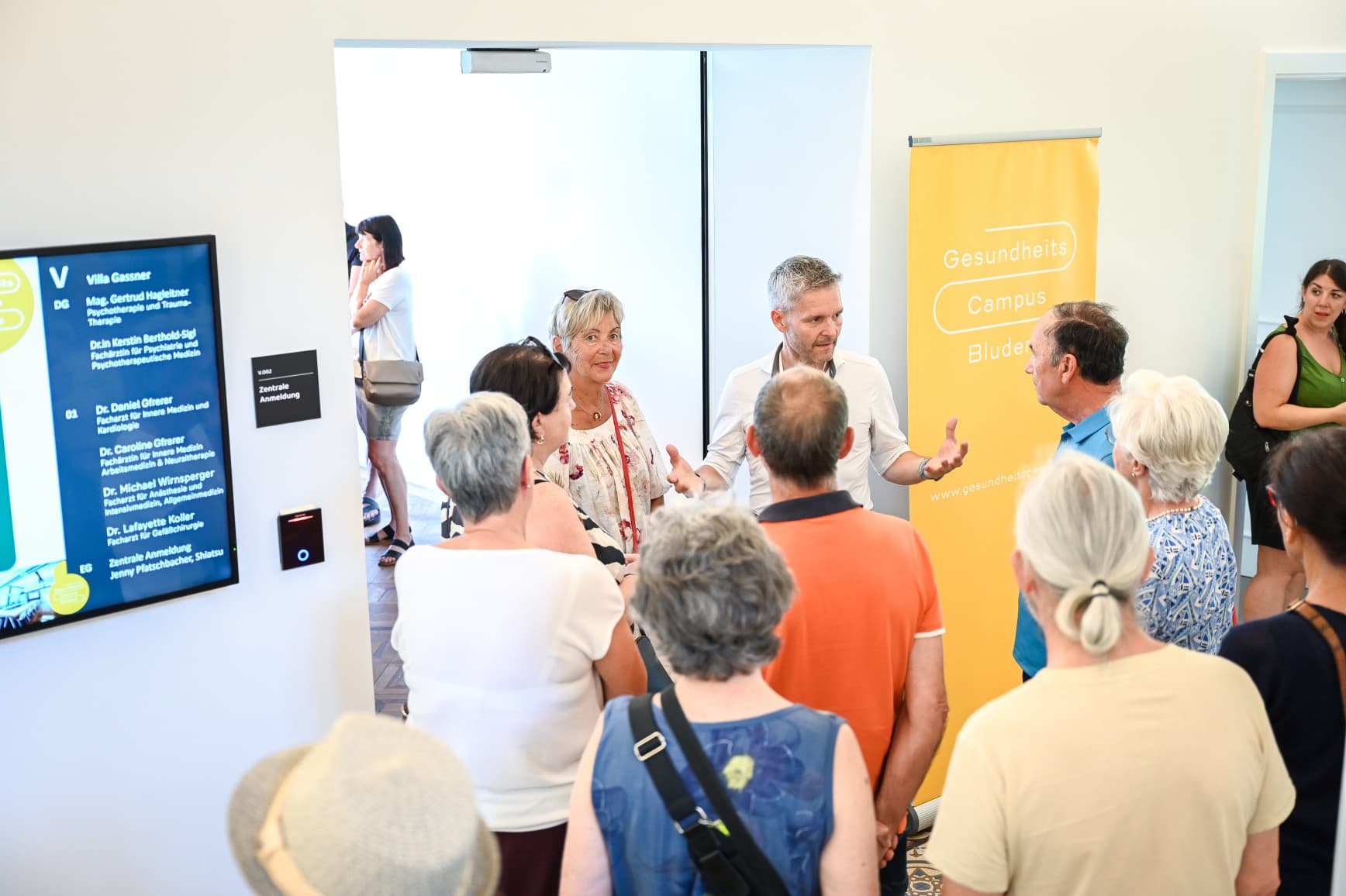 Die Führungen durch den Campus führten die Gäste unter anderem zum MRT, der Tageschirurgie und dem OP, dem MicroGym und zu den anderen Ordinationen und Praxen sowie zur Spielgruppe Purzelbohna. Auch die stilvoll renovierte Gassner-Villa war Bestandteil der Rundgänge – ihr Flair, ihre Geschichte und die neue Nutzung als Arztpraxis, Seminar- und Therapieraum und als Koordinationsstätte am GesundheitsCampus begeisterten viele.